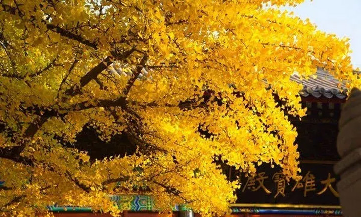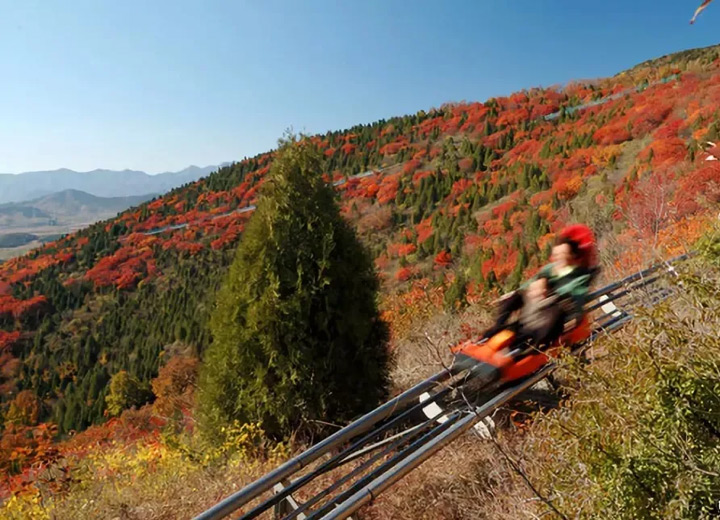 除了紅葉,紅螺寺那棵雌雄銀杏的古樹也是分外養眼,它就在寺中大雄寶殿的位置,獨佔C位。紅螺寺內還有一條景區內的滑道,800公尺的路程,數分鐘內便可到達,終點是在半山腰的寒山寺,在滑道上可以欣賞到紅螺寺以及APEC會址的全貌。