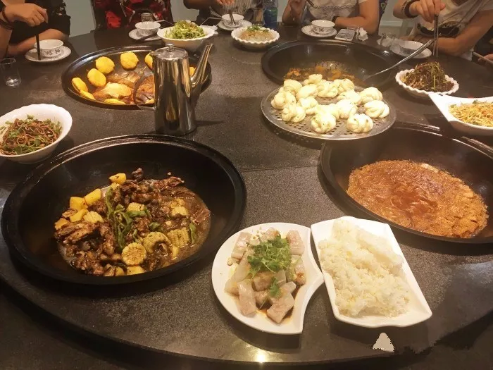 推薦排骨鍋、鐵鍋燉大鵝,鍋出溜和小花卷,排骨肉質很嫩、又燉的特別入味兒。土豆感覺是對半切開,很大,吃起來很軟綿。玉米是糯玉米,比較黏,豆角也是燉的軟爛,口感很特別,裡面的豆子又軟又糯。大鵝鍋量很大,很實惠,味道不錯,真是吃到撐,老店值得一去,服務態度很好!