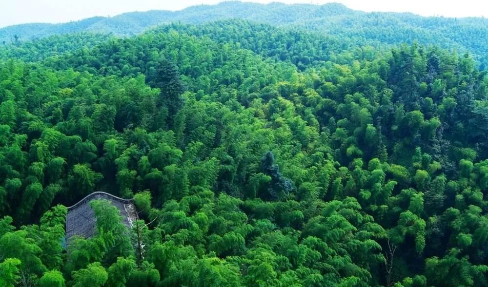 園中粗比碗口的楠竹枝葉繁茂,一叢叢、一片片,綿延覆蓋五百多座山丘。園中夏日一片翠綠,冬日一片銀白,如此廣闊幽美的竹海,國內外罕見。