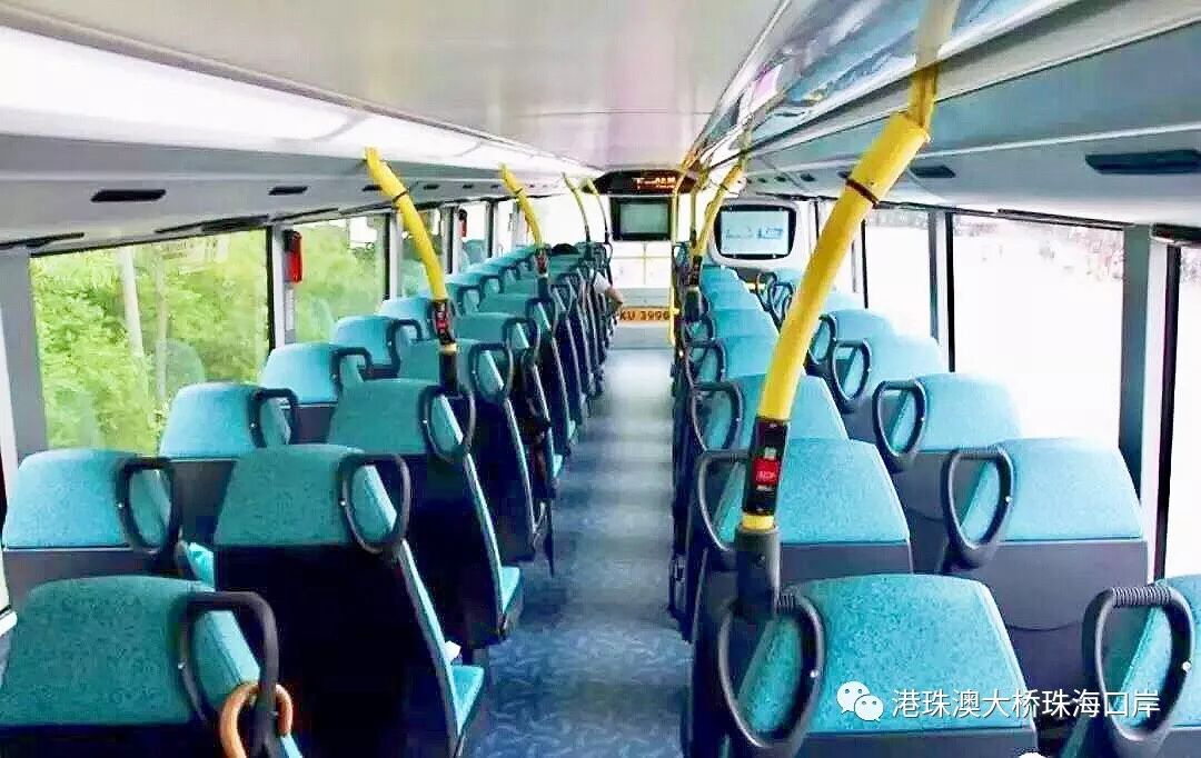 雙層巴士層高4.2米,總座位數是79個,單層巴士座位35個,這些穿梭巴士原產自德國, 車身金色,內飾藍色海洋風,每個座位都有用於充電的USB接口。