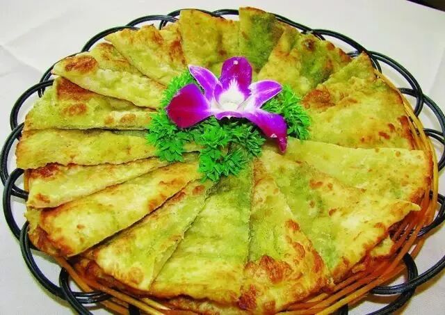 用清油煎的薄餅。有隻加一點酵子的“半死麵”和不加酵子的“死麵”兩種。將小麥麵和好揉勻、擀開,撒上香豆粉,澆少許清油抹勻,捲成長卷。再順麵卷方向探成螺絲狀,切成小段,逐個壓平擀薄。在燒熱的烙饃鍋中煎熟即可食用。“狗澆尿油餅”名字有點不雅,但名聲很大,有青海的“狗不理”之稱。名字由來是上世紀50年代以前,當地居民廚房灶台上多使用陶製的小油壺盛放清油,烙餅時,用小油壺沿鍋點油的動作,猶如狗在牆根撒尿的姿勢,故稱“狗澆尿”。