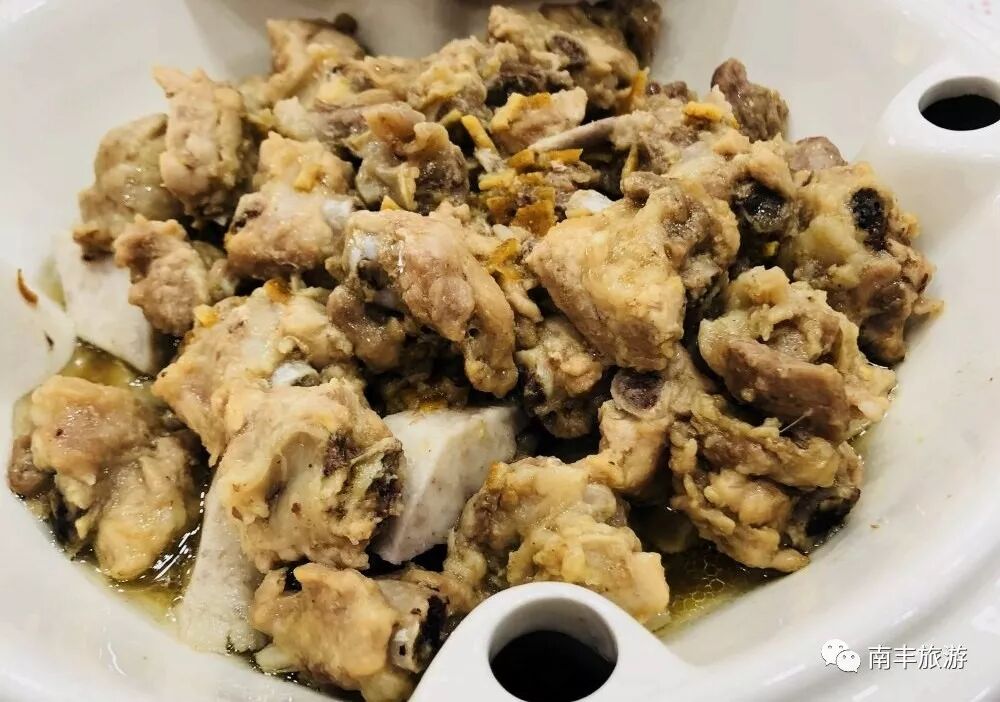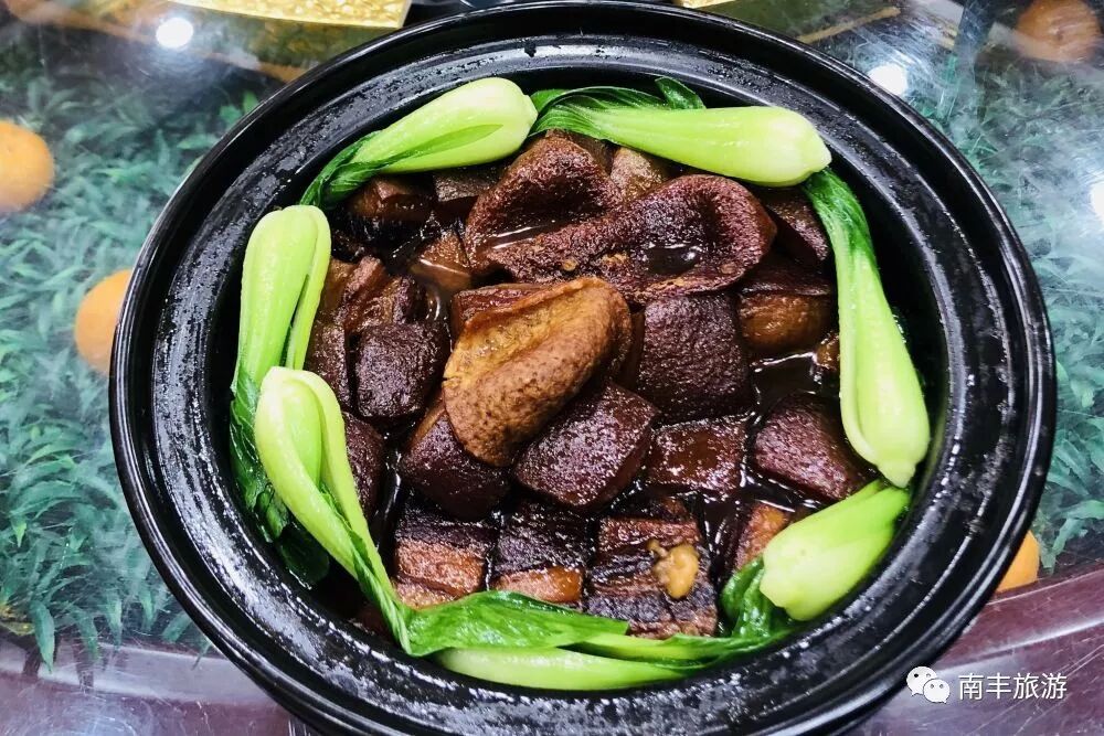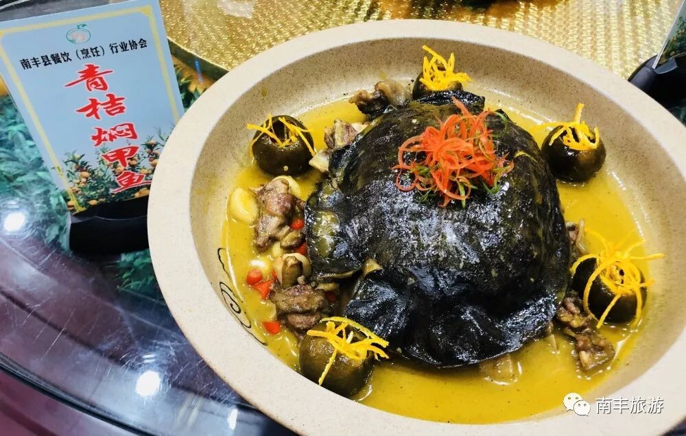 南豐有蜜桔小鎮、溫泉小鎮以及龜甲小鎮,對於美味自然少不了甲魚,高蛋白、高營養以及高美味。紅燒之後的甲魚,再加上青桔、桔絲放入燜鍋中慢慢燉,熬出青桔見汁、熬製湯汁見底。一入口甲魚的嫩滑不腥加上桔子的清香,一個字:絕!