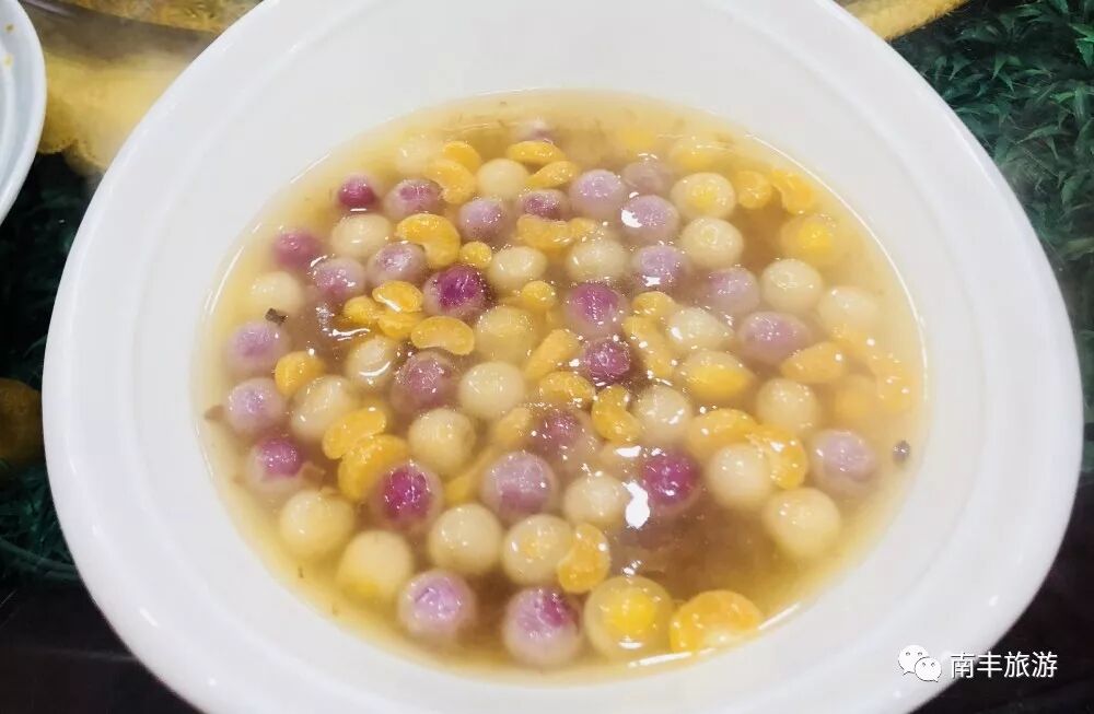 小丸子、紫薯丸、還有新鮮的蜜桔果肉,組合成一道色彩斑斕、五顏六色的甜品。加入桔肉慢慢熬製,讓桔味滲進了丸子中,丸子的香糯配上桔子的清香,吃完必是口齒留香。