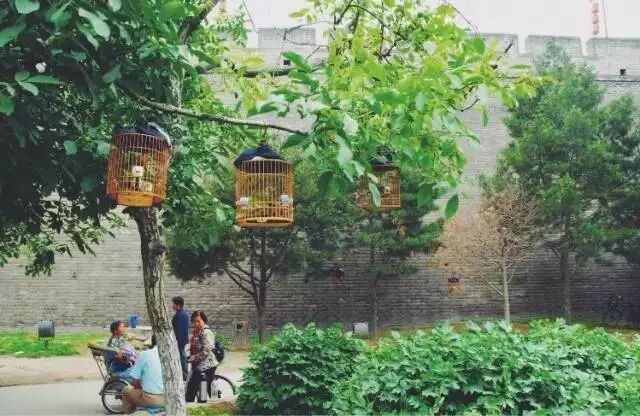蓊鬱的枝葉在水泥馬路上灑下斑駁的光影,古老的宅院和青灰色的城牆,似乎還在午睡,沿街的院子裡,有人遛鳥、散步、聽曲藝……