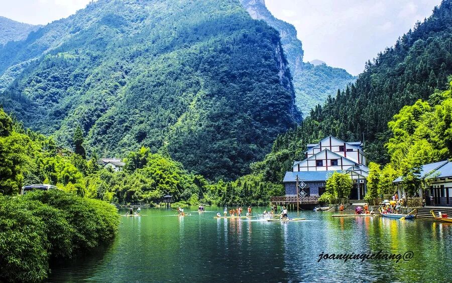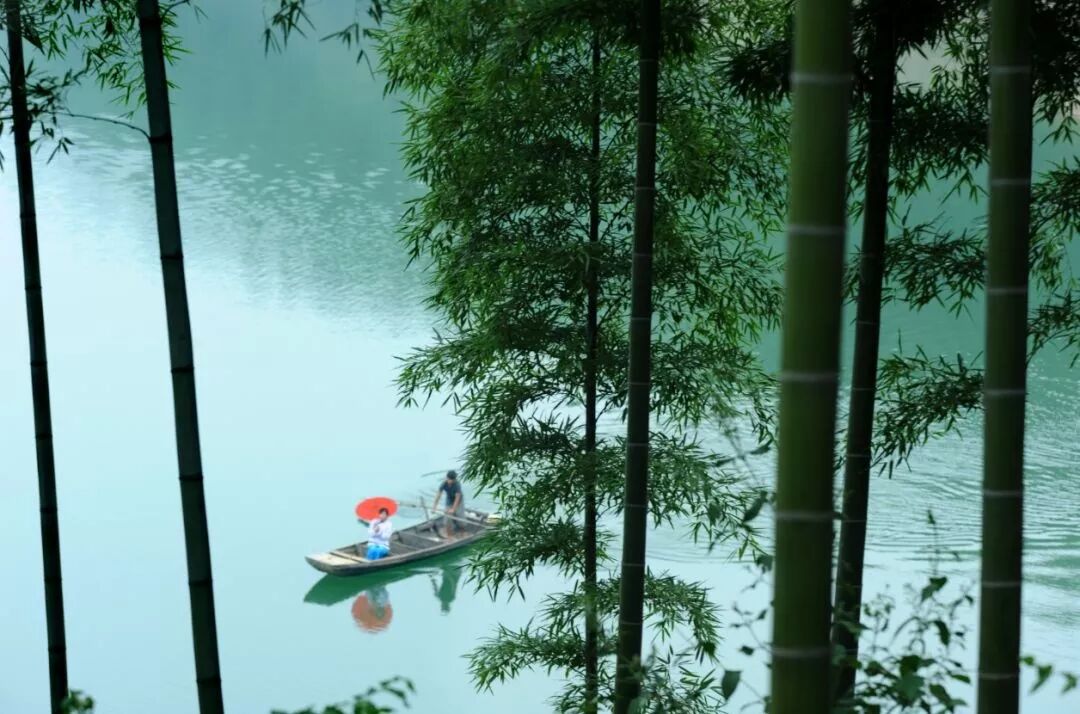 三峽竹海內沿溪沿路漫山遍野竹浪如海,遠者蒼翠連綿、近者竹橫笛豎蕭,如詩意畫卷,美不勝收。