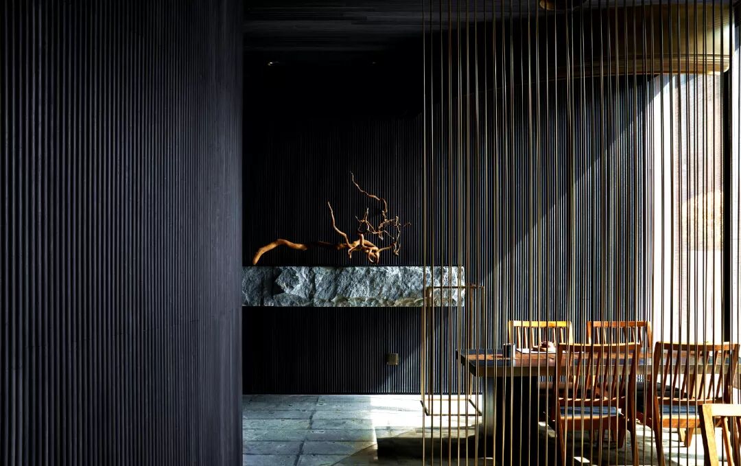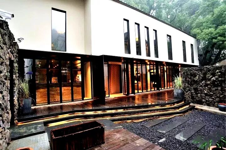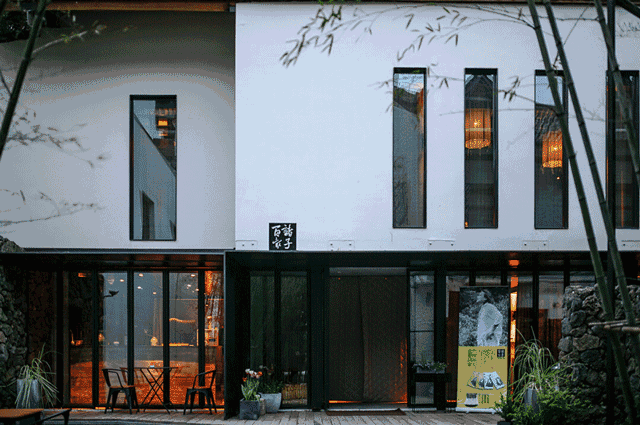 白色的高牆下是透明的玻璃,玻璃前是黑色的石子路,石子路邊是竹林,遠遠望去,竟有一絲不真切感,在山水環繞、遍野綠色間伸出一絲清冷幽靜又與世相融的美感,就和它的名字一樣,諸子百家,各有其長,又長於時代。