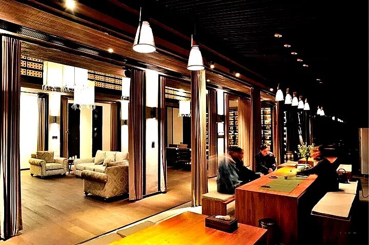 無論室外陽光明媚或是陰雨連綿,在這裡總是時光靜好。光影透過黑暗凝聚在茶具上,幽靜的似乎嘆息都顯得多餘,偶爾卻又有茶話會,聚集了那些熱愛著茶的人們在一起談天說地,品茗享靜,在窗外繁華的車水馬龍中,自成一方天地。