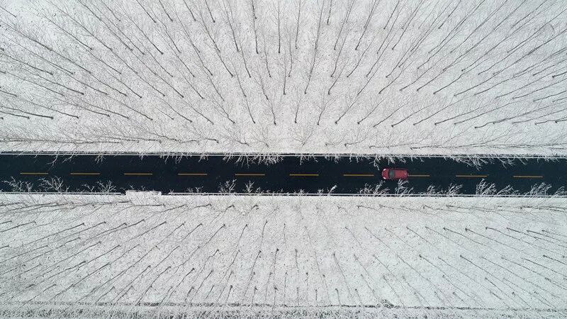 道路兩旁是“ 萬木披銀,千樹瓊花 ”的壯觀景象,
