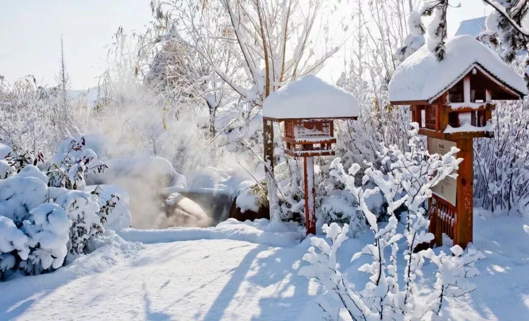 大雪過後的湯沐溫泉,就此迎來了絕美勝景。