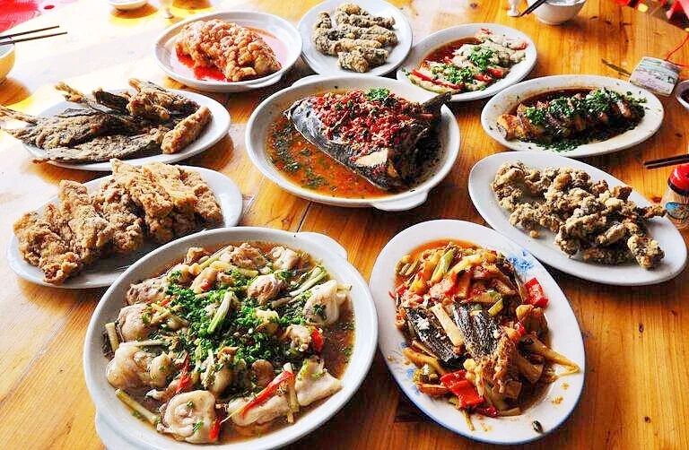 釣完魚後,必須得嘗一嘗這裏的全魚宴。蒜香河鰻、清蒸白條、西湖醋魚、紅燒雜魚、剁椒魚頭,整整一桌全魚宴,咬一口,魚質異常鮮嫩,怎一個“香”字了得!