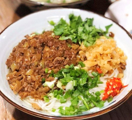 王阿蓋小吃處處透著一股煙火氣,價格實惠,不到100塊錢就能吃出超大的滿足感。蔥花饅頭、肉圓、牛肉手工面是食客的標配,不過最受歡迎的還是拌粉幹,地道的龍遊特色粉幹,加上紅椒末、土筍乾、香菜、龍游特有的白辣椒,吸吸嗦嗦吃上一碗,都捨不得擦掉嘴角的湯汁。