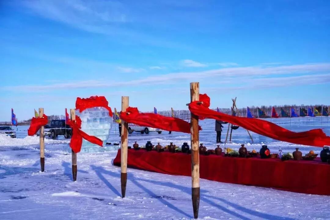五大連池冬捕在正式下網前,有一段既神秘又神聖的祭湖和醒網儀式。