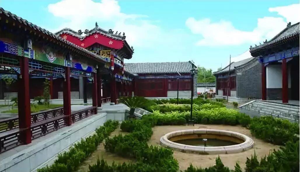 建築內擺放著眾多明清式仿古家具,院落裡有四棵壯實的槐木,院週還圍繞著一條護院河……