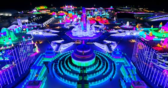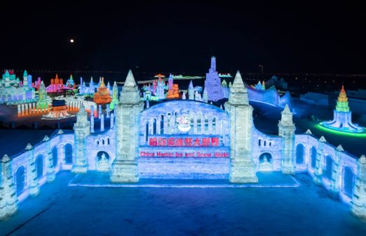 以冰為舞台,以雪為背景,哈爾濱諸多景區推出精彩的巡遊和演藝。“哈爾濱融創樂園·冰雪奇園”在在冰雪的純白底色上,塗抹出以冰燈雪景、遊樂互動、精彩演藝、特色餐飲為繽紛色彩的大型冰雪互動主題樂園。