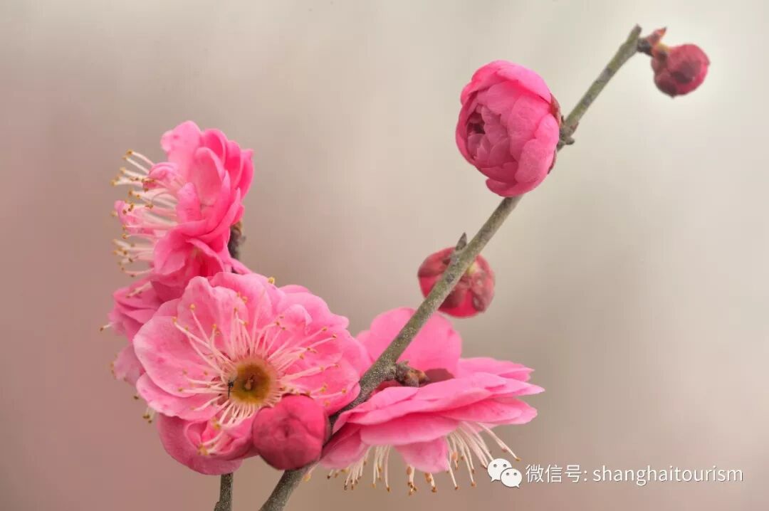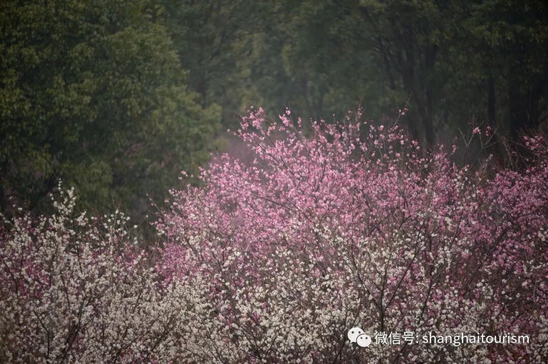 花開海上生態園梅花林中的1.5萬株各式品種梅花已經進入盛花期,吸引眾多遊客來此賞梅探春。這裡也是上海唯一一處以水為魂的梅園,面積達300畝,涵蓋宮粉、硃砂、綠萼、江梅、玉蝶、美人梅等60多個品種梅花,香雪如海。