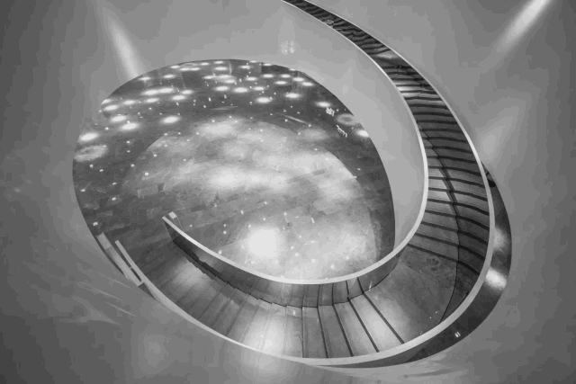 還有地下一樓的旋轉樓梯,也非常nice!坐著or站著拍都很好出片,甚至站在樓梯外,都有種深陷漩渦的奇妙意境,氣場瞬間兩米八!