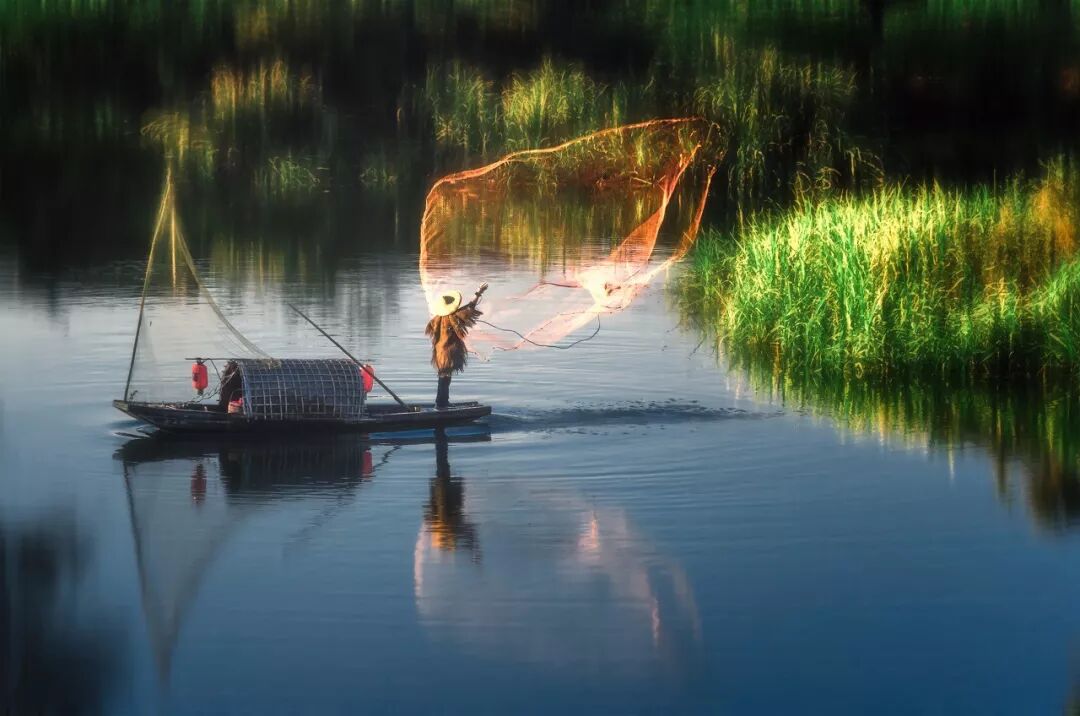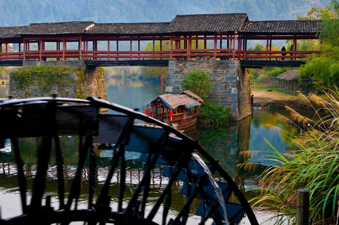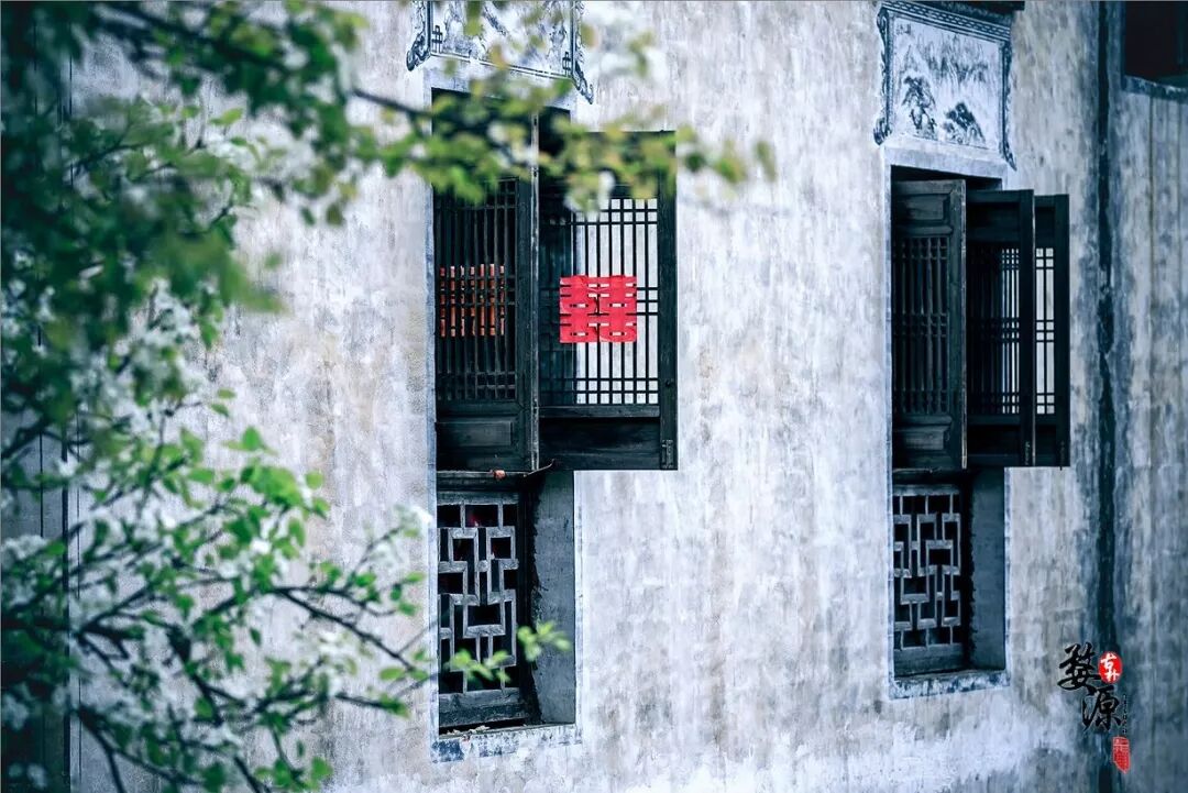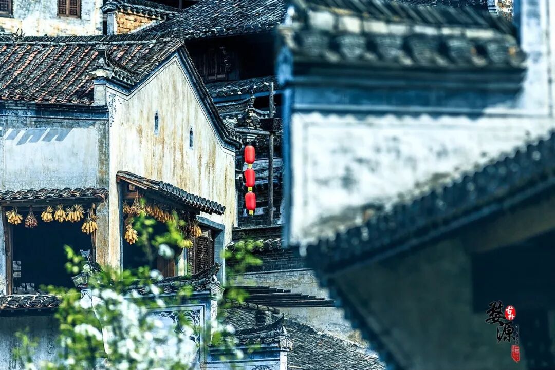 黑瓦白牆的徽派民居夾雜在一片金黃之間