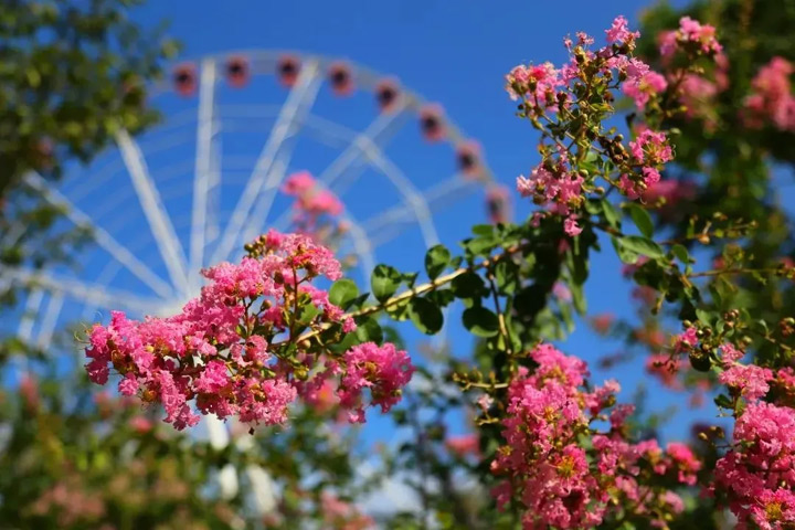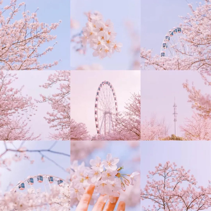 摩天輪項目一上線就圈粉無數,無論從哪個角度拍它都是浪漫大片。坐上摩天輪,賞花也有了全新的視角,更驚豔的是,當摩天輪旋轉至制高點,你可以360°無死角地俯瞰顧村公園全景。
