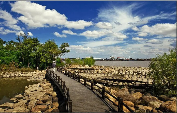 上海吳淞砲台灣國家濕地公園位於寶山區東部,背山面水,東臨長江、黃浦江,西倚砲臺山,西南角是著名的吳淞口,清朝時曾藉此地形建造水師砲台,所以得名為“砲台灣”。砲台灣公園獨特的地理位置也奠定了它在上海人心目中不可取代的地位。