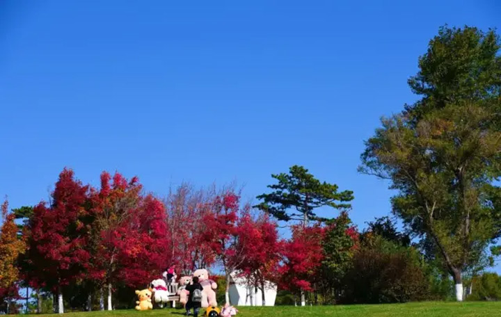 長春大大小小公園裡的秋日風景也很怡人,隨便一拍都是大片,悠悠綠草與枯枝、楓葉相映成趣,走在其中,悠然愜意。