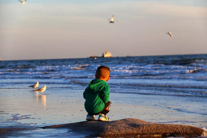 清晨和傍晚來到海邊,