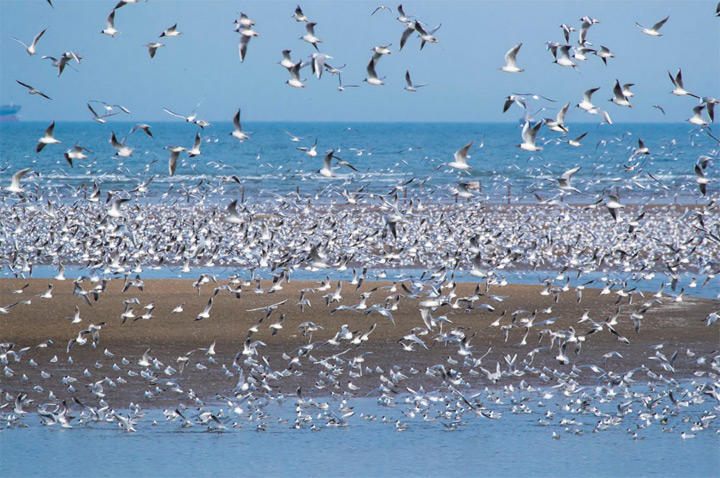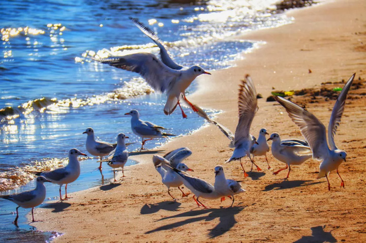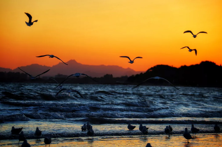 牠們迎著海風舒展著翅膀,