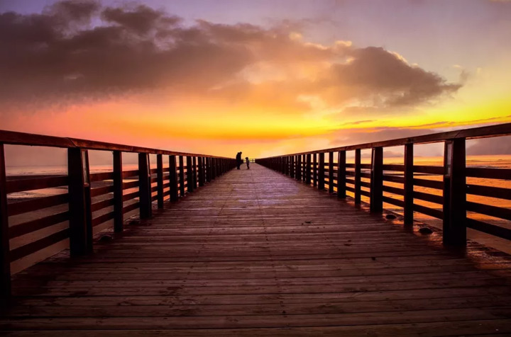 在黎明時分靜候日出破曉的第一道曙光,