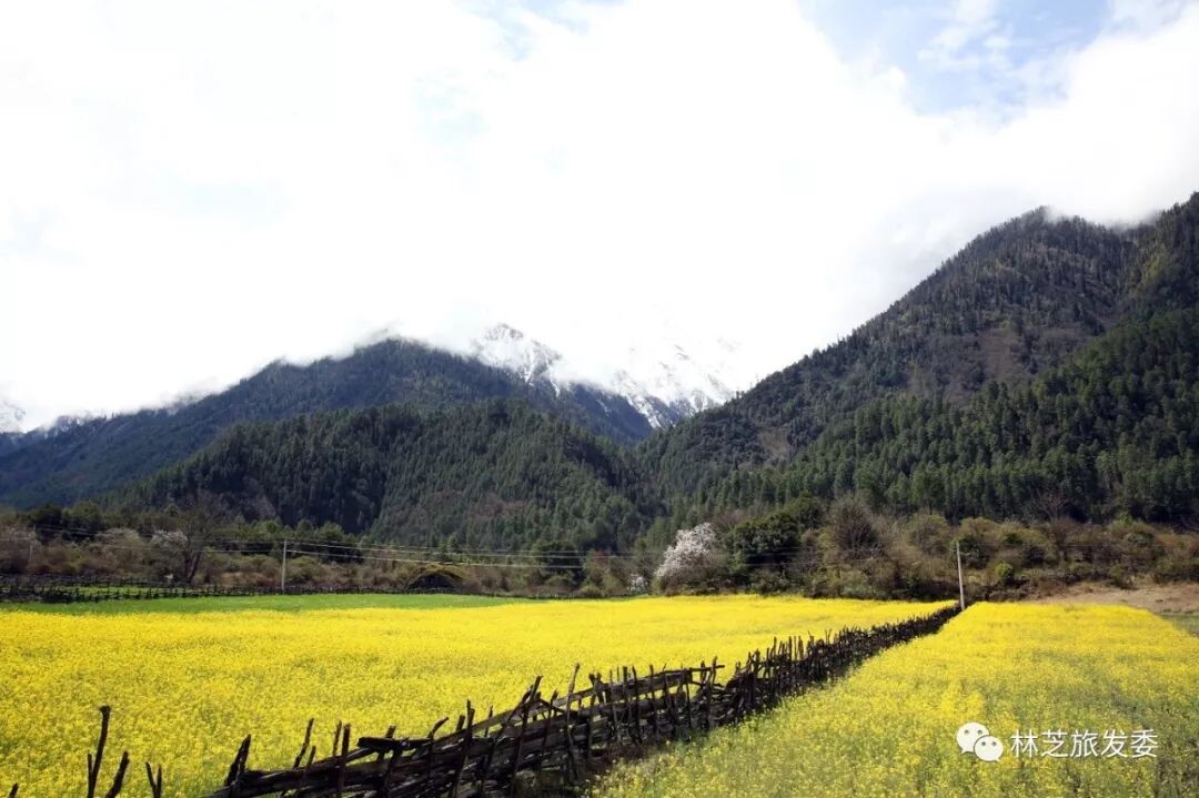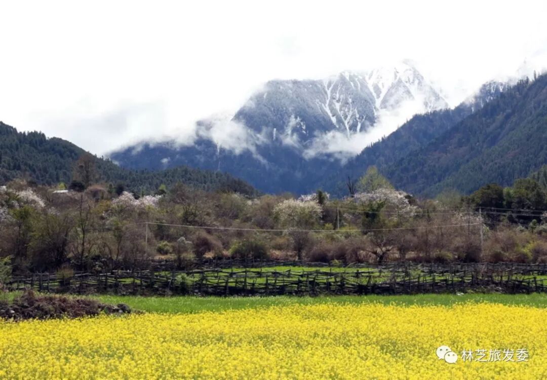 ☑與油菜花相映成趣:在林芝,大片油菜花幾乎都在5月綻放,而位於波密索通村這片油菜花幾乎與桃花同時盛開,規模宏大。