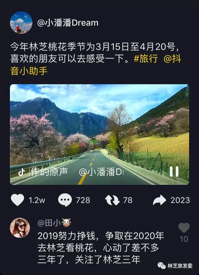 “這個林芝桃花賞花點都已經在抖音上刷屏啦,