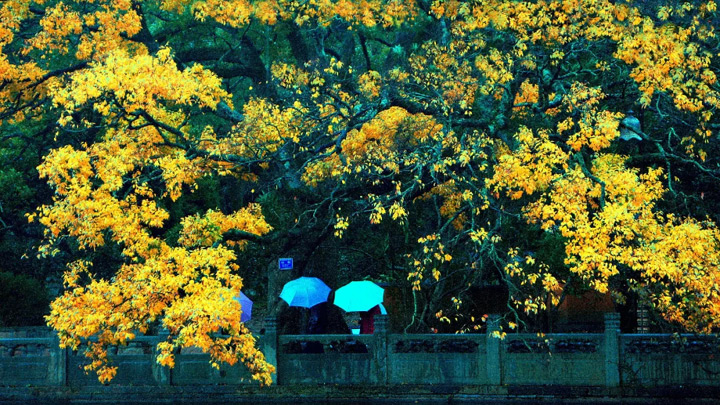 山川之間層林盡染,禪院古道斑斕幽靜,