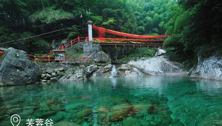 芙蓉谷是黃山主要景區之一,是大黃山旅遊的新名片和休閒慢谷,黃山北端一條溪流從芙蓉峰流下,芙蓉谷就繞溪而建,溪水邊漫步,大小瀑布水聲淋漓,彩潭也適時地出現,河裡的怪石毫無規律的躺著,竟比遊人還要自在,除了宜人的景色之外,芙蓉谷還有“野人”、人體彩繪的表演供遊客欣賞。