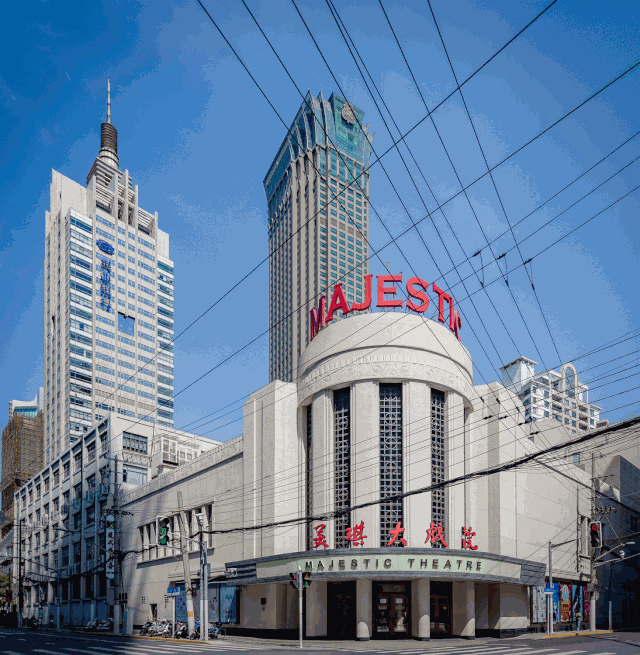 美琪大戲院,MAJESTIC THEATRE,位於上海江寧路66號,是始建於民國30年(1941)的二層鋼筋混凝土框架結構的戲院建築,總建築面積為9434平方公尺。因為是搶救性保護,且戲院二層看臺屬於大跨度混凝土桁架體系,建築的施工難度較大,旨在建築保護的基礎上進行整體修繕、室內裝飾、結構加固、設備更新這一系列工作以滿足現代劇院的使用需求。設計施工方案強調了外立面雨棚和燈飾等部分的修繕;室內則以整體優化平面功能為主,保留恢復了特色水磨石鋪設以及觀眾台的裝修設計;同時更新完善消防系統、水暖電設備等基礎功能,此外由於戲院建築的特殊使用功能,團隊還特別設置靜壓箱改善原空調設備對音效的影響。值得一提的是設計施工團隊在專業技術方面的開創性:為了保證大跨度混凝土桁架體系建築的結構安全,在支撐樑外增加了體外預應力系統,在原始混凝土樑外側設置4根拉結筋,向南北兩側施加預應力,成功保障了二層看臺的承重,這是體外預應力做法在現有文物保護建築修繕工程中的極少數應用實例。