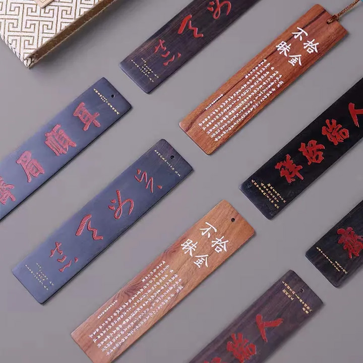 銅梁匾額書簽採用銅梁匾額博物館的經典匾額圖畫為背景,用櫸木盒為包裝盒,以“拾金不昧”“耳順眉齊”“賢母天荒”“人瑞啟祥”四款匾額體現。