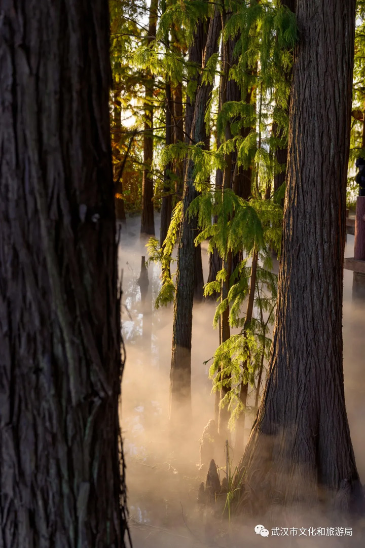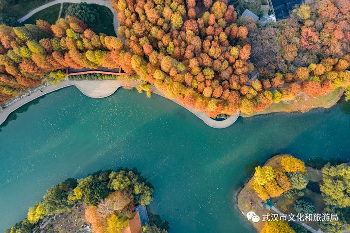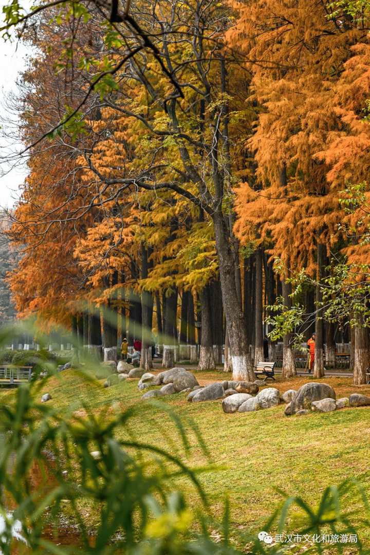 江灘蘆葦爲武漢人下了一場詩經裏的雪,解放公園的池杉給湖泊戴上了紅棕色的珠鏈。