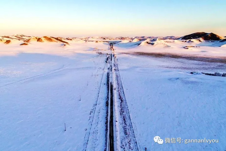 茫茫雪原上,層層的山丘上布滿白雪,站一高處,視野廣闊,在冰雪斑斕裏看到巍峨的雪山,將北國風光盡收眼底。