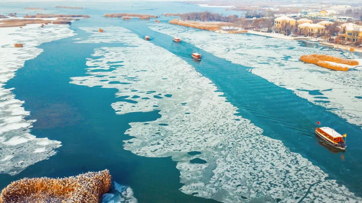 跨越黃河金岸,集大漠、黃河、高山、綠洲爲一處,沙海浩瀚,黃河橫穿,既具西北風光之雄奇,又兼江南景色之秀美。冬季到訪,不僅能感受沙漠的靜謐風光,還能體驗王維“大漠孤烟直,長河落日圓”的奇觀。