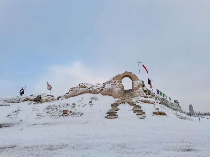 滑完雪還可以到西夏風情園裡面轉轉,欣賞古西夏悠久、神秘的建築在冬天裡的獨特景觀,還有漢服與美景更配哦~