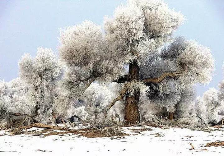 烏蘇市古爾圖罕見的雪後胡楊
