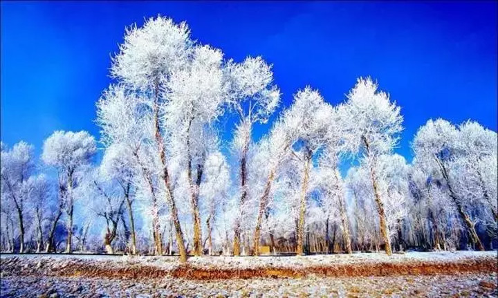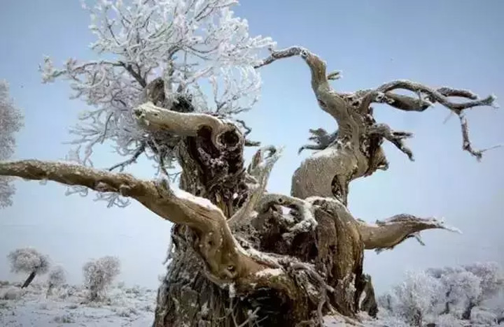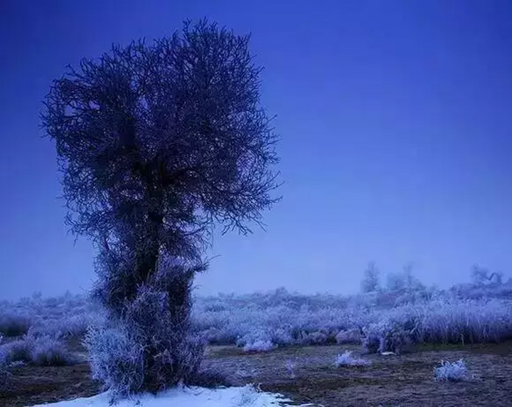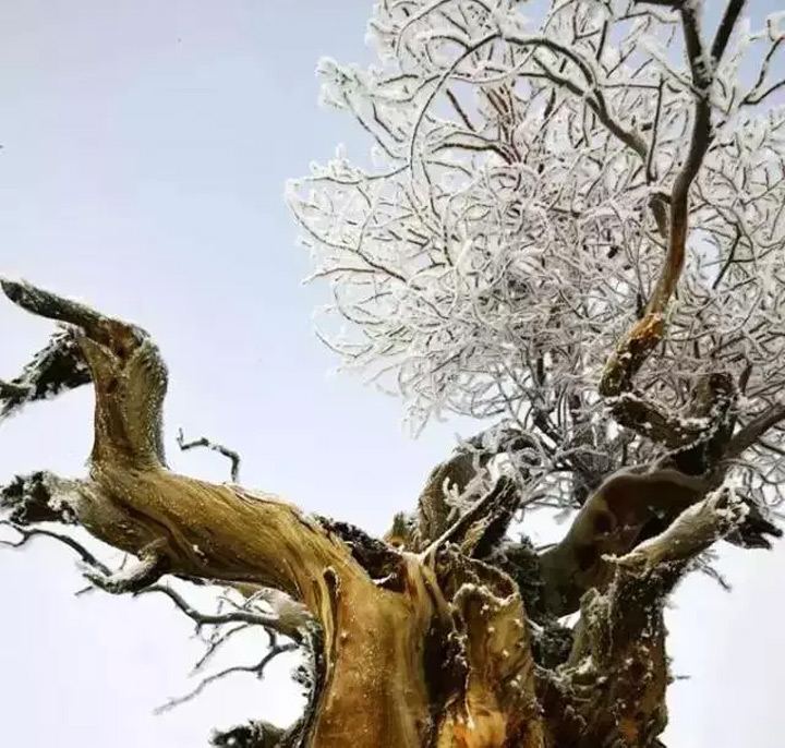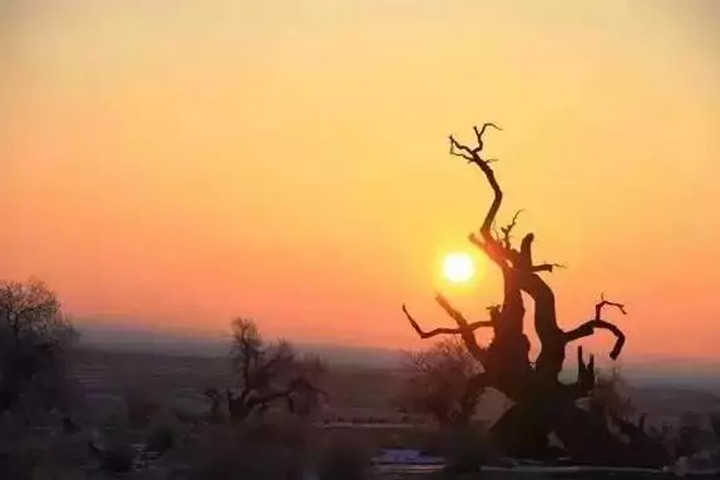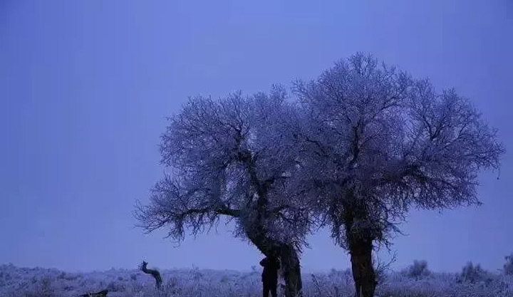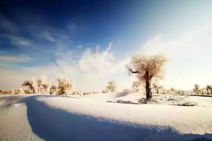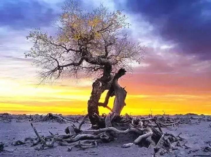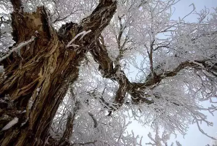 人都說“淩寒獨自開”的梅花最爲傲骨,但却鮮少有人贊揚寒霜中堅韌的冬日胡楊。