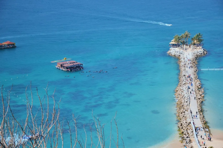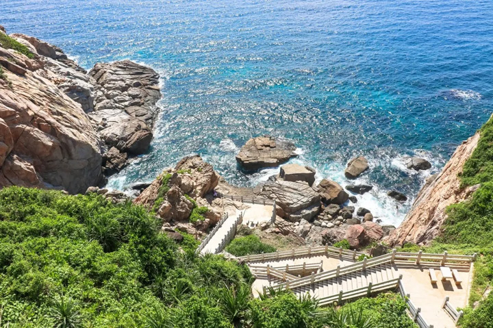 分界洲島擁有20多個人造和自然景觀處,上島之後沙灘的範圍並不大,其他都是懸崖礁石。但是因爲水藍,觀賞性很高。