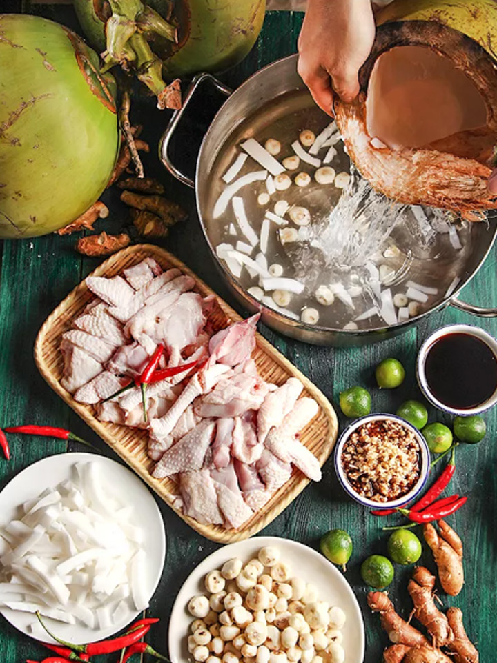 把切好的雞肉倒下去,全程不加一滴水。等到湯水再次翻滾,輕輕撇開湯麵的浮油,喝上一勺清澈又鮮甜的椰子雞湯,便是人間值得。吃原汁原味,鮮香甘甜。冷天最饞這鍋菜,煮一煮、燙一燙,鮮嫩到流口水,營養好吃不上火;清甜又爽滑,鮮香滋補還暖身。