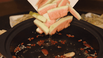 在一盤清水裡放進紅棗、枸杞、桂圓、玉竹、黨參各適量,大火燒開。剛端上鍋的石山羊火鍋湯顏色乳白,鮮香無膻,羊肉嫩滑爽口,佐以海南產什錦醬或薑蒜茸醬油及辣味蘸著吃。邊吃邊加料,並隨意調味,連皮帶骨切成一塊塊的,配上竹蔗、玉米、紅蘿蔔或是木瓜,既能吃出羊肉的原味,又能喝上一碗溫潤不膩的羊湯。