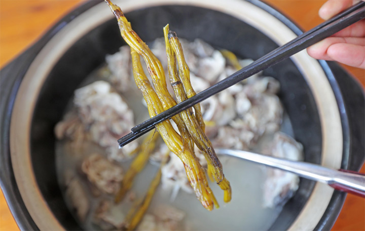 石斛雞湯是一道以烏骨雞、石斛、茯苓片、西洋參為主要食材製作而成的一道美食。做法簡單,營養豐富,極具有滋補功效。圍著暖胃雞湯打邊爐,在鍋裡燉煮得軟爛的雞肉,撈起來的瞬間還帶著熱氣,雞肉軟嫩入味,輕輕一撕就開了!入嘴的肉一絲一絲的,不用使勁咀嚼,輕輕一抿就化開,一口熱湯配上一口雞肉,簡直不要太美好了!