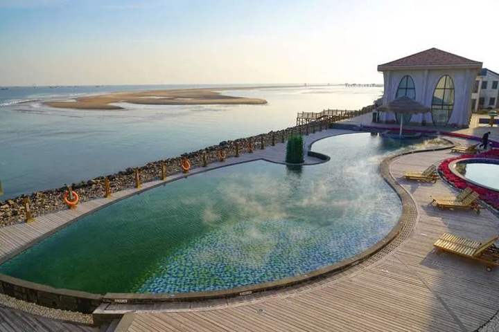 這裡的溫泉養生,暖心溫泉水來自地下1700公尺多深,經國家權威部門認證。月島溫泉水溫常年35度至73度PH值為8,呈弱鹼性含多種化學元素,在您享受泉水的熱度更是可以和大海近距離接觸。