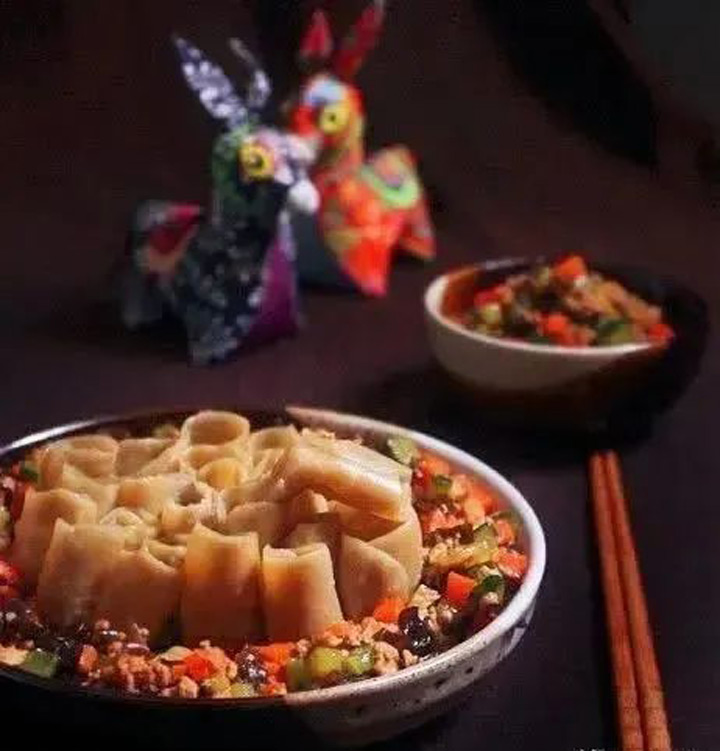 “羊肉臊子台蘑湯,一家吃著十家香”,說的就是這香氣傳十裡的蓧面栲栳栳。蓧麵栲栳栳是山西高寒地區家家戶戶都熟知的傳統麵食小吃,是山西十大麵食之一。