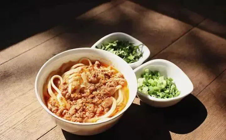 把麵糊放到抿床子上,用抿子抿成一截截的抿八股兒,煮一分鐘即可。加入各味調料和臊子配菜,吃著爽滑可口,也易於消化。