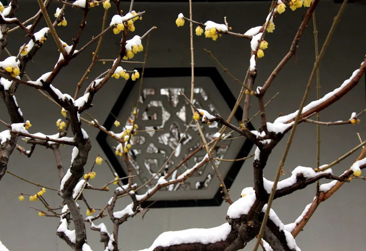 蠟梅,別名寒客、久客和素兒,栽培歷史悠久,早在唐代已有種植,唐代詩人崔道融有詩雲:“故里琴尊侶,相逢近蠟梅。”至宋代時普遍栽培,並作為插花相贈。到了明、清時發展更盛,已有品種10餘個。