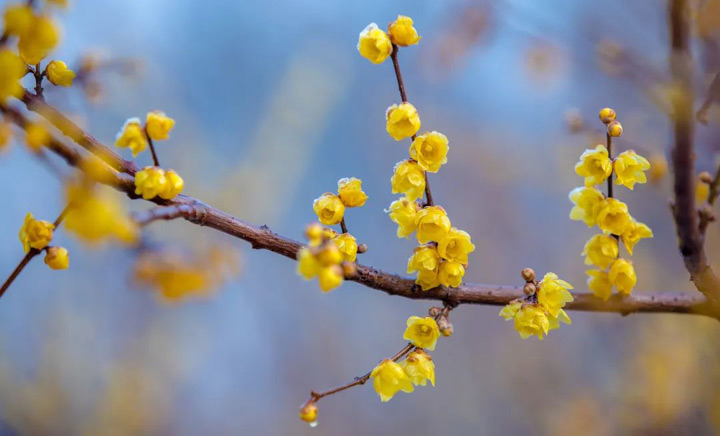 這冬日裡難得的一抹蠟黃,為凜凜寒冬增加了一絲暖意,也為寂寥的冬日增香添彩。這馨香早早地喚醒了人們的嗅覺,給人們帶來了一些春的祈盼。