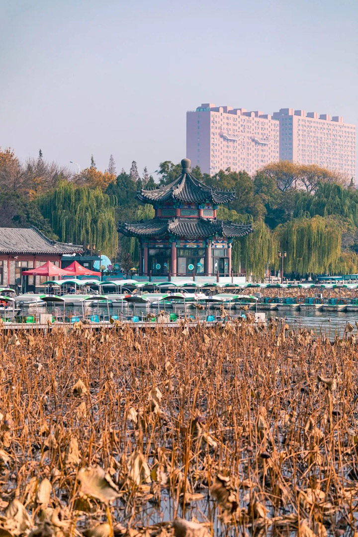 冬日的大明湖除了荷塘內展現風骨和堅韌的殘荷、岸邊如秀髮般絲絲垂下的柳條,還有迎著寒風,蓓蕾於枝頭,溢香於庭院的蠟梅。這黃色小精靈的到來給大明湖的寒冬平添了幾分春意。