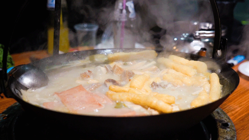 這種小火鍋以純椰漿打底,加了香料,喝起來鹹甜中帶絲奶香,讓肥牛、蟹柳、芝士丸、大白菜等食材也變得奶香絲滑起來。吃罷,還可以往鍋裡倒入芝士和烏冬,滿滿拉絲,深得芝士控的心。